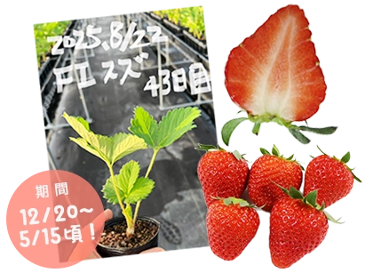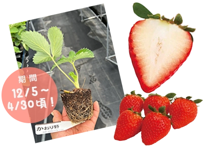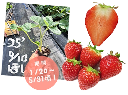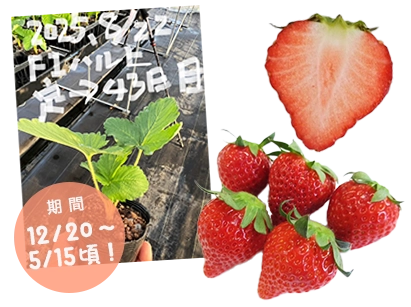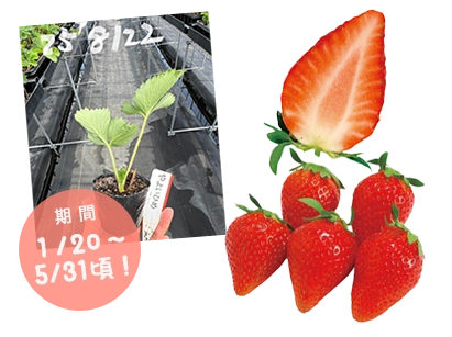 *生育状況によって、いちご狩りができる品種が変わる場合がございますので予めご了承ください。